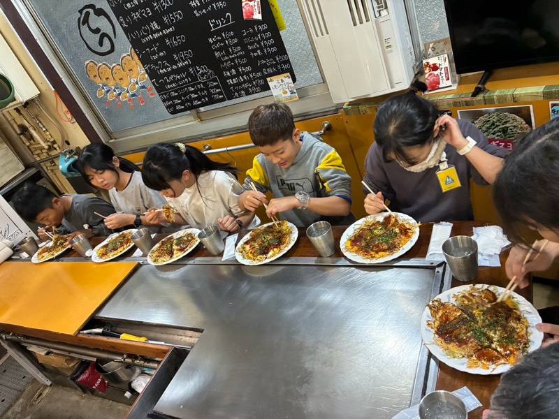 お好み焼き屋さんでは、お好み焼きを作る様子を目の前で見せていただき、期待を膨らませていました。