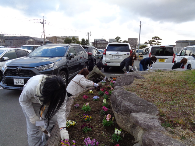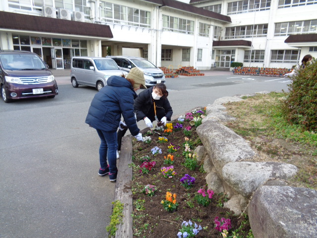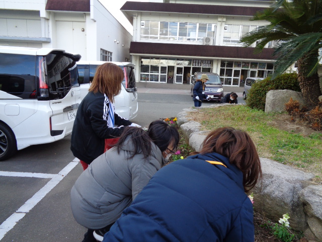 本日、PTCAの施設安全委員会の皆さんが花植えとトイレの清掃をしてくださいました!花壇もトイレもきれいに整えられて、気持ちよく過ごすことができそうです。とても寒い中、本当にありがとうございました。