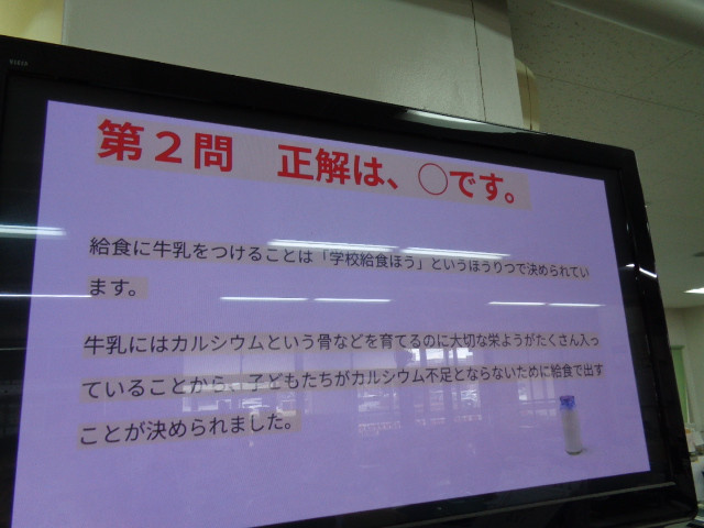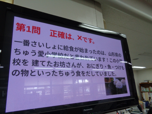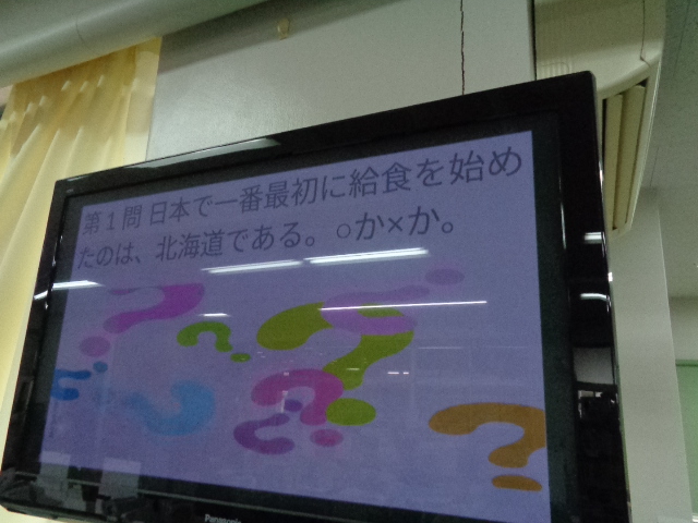 本日は給食クイズがありました。給食委員会の子どもたちがプレゼンを作成したものです。