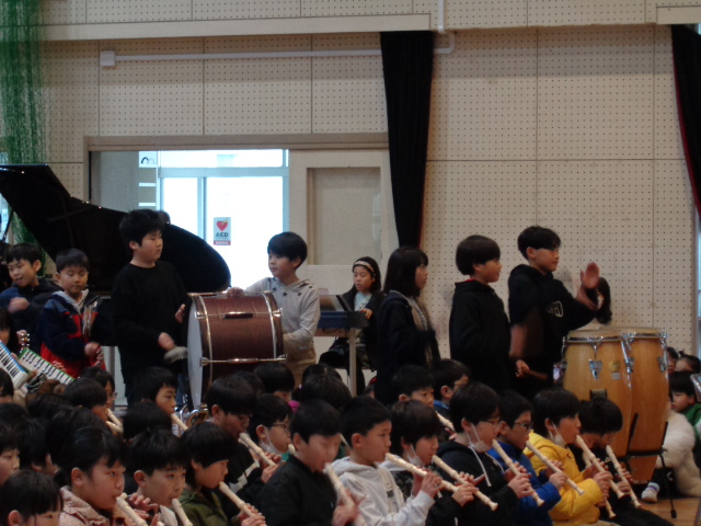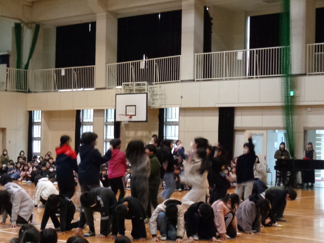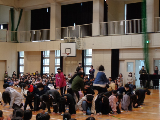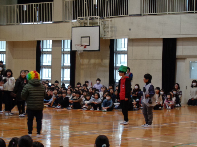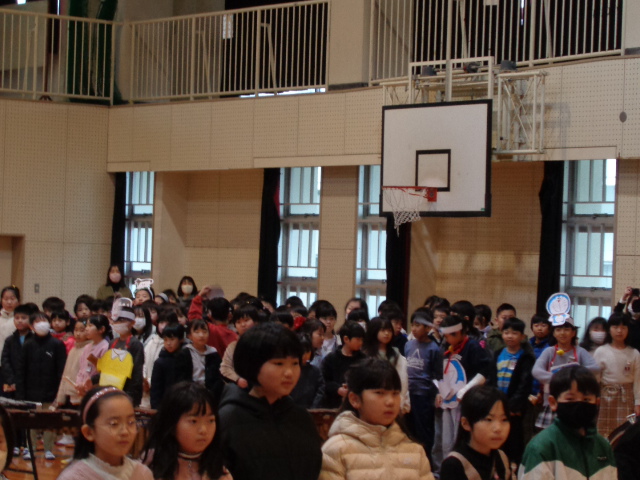 在校生からは、呼びかけあり、歌あり、ダンスあり、クイズあり、お笑いあり、それぞれの学年で工夫しながら、6年生への感謝の気持ちを伝えることができました。最後に、6年生から劇と歌のプレゼントをもらいました。6年生は卒業式まであと9日です。