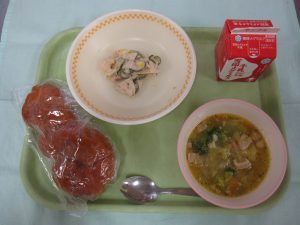 黒糖揚げパン 牛乳 ポトフ れんこんときゅうりのごまネーズ