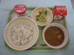 豆乳カレーライス(麦ごはん、豆乳カレー) 牛乳 白菜とりんごのサラダ ヨーグルト