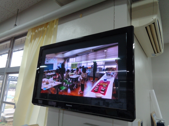 11月に実施した東っ子フェスタ時に、PTCAの役員の方が撮影された写真や動画をDVDにして学校に寄贈いただきました。そのDVD鑑賞会を火・水・木曜日の3日間給食時間を使って放映しています。ありがとうございました。