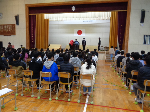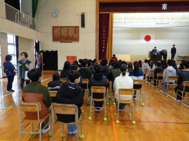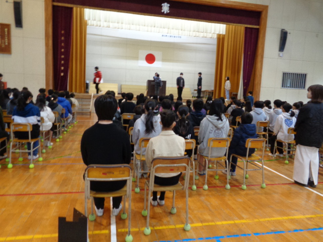 今週から、卒業式練習が始まりました。座り方・立ち方・礼の仕方・証書のもらい方・歩き方を確認していきました。緊張感のある雰囲気の中で有意義な練習が行われています。「卒業式は最後の授業」と言われています。これまでお世話になった家族・地域の方・5年生・先生方に立派な姿を見せるべく来週はリハーサルを行います。