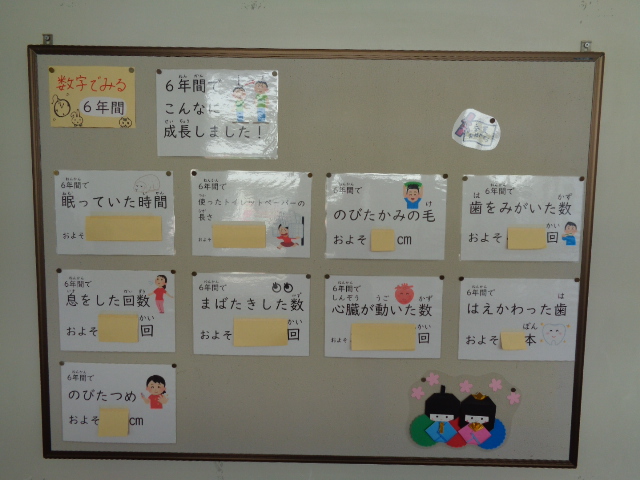 本日は、保健室前の掲示板を紹介します。子ども達のために養護教諭が毎回心を込めて作成しています。