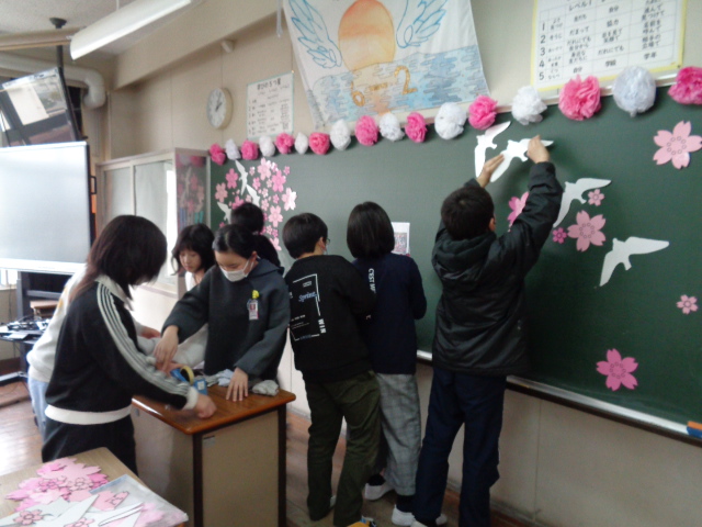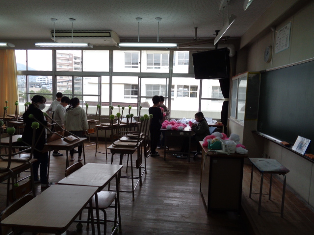 5年生のおかげで立派な式場が出来上がりました。5年生の働きぶりに感動しつつ、新宮東小学校の最高学年としての自覚がさらに増したように感じた一日となりました。5年生本当にありがとうございました!明日の卒業式も引き続きよろしくお願いします!