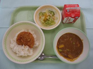 カツカレー(麦ごはん、とんかつ、カレー) 牛乳 甘夏サラダ