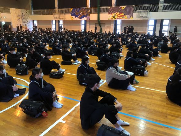 3月22日(日)8時00分から体育館で、2年生の修学旅行の出発式を行ないました。待ちに待った修学旅行、いよいよ出発です。雨も上がり、天気も快方に向かっているようです。みなさんの楽しいお土産話を待っています。それでは、元気に行ってらっしゃい!